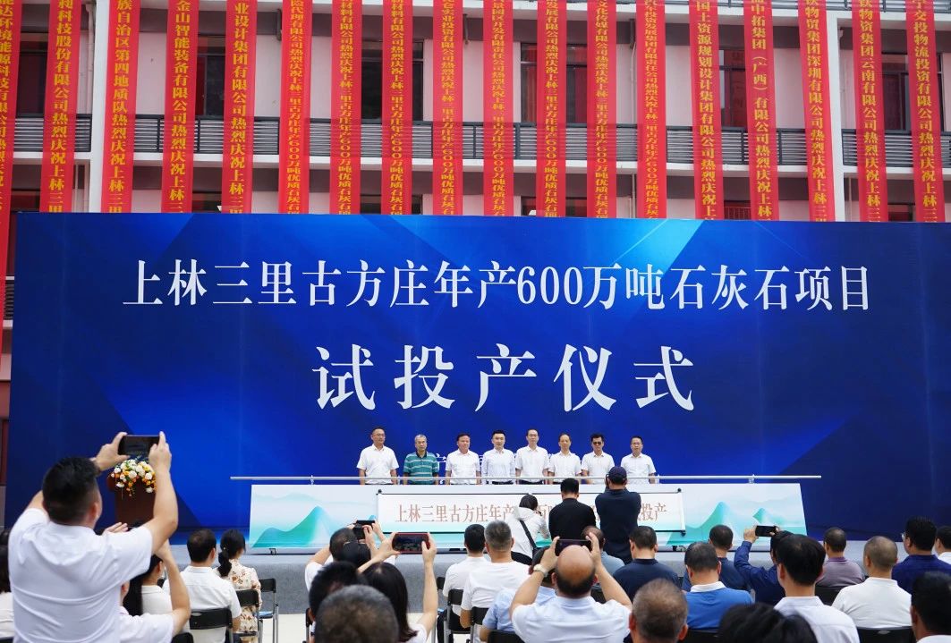上林县委副书记、县长王鹏,南宁市重点办二级调研员王发兴,南宁市应急局二级调研员廖绍帮,南宁交投集团党委书记、董事长曹壮,南宁交投集团副总经理马卫然,南宁交投矿业集团党总支书记、董事长张二毛,广西建材院党总支书记、副董事长、总经理(主持全面工作)胡斯亮,南宁市自然资源局,上林县有关部门,南宁交投集团,南宁交投矿业集团,各参建方相关人员参加试投产仪式。