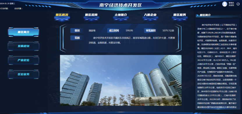 广西国土规划集团获奖作品《基于时空大数据平台的产业用地多维度评价应用——广西开放型园区推介平台》利用时空大数据分析技术对产业用地进行多维度评价,创新开发了广西开放型园区推介平台。
