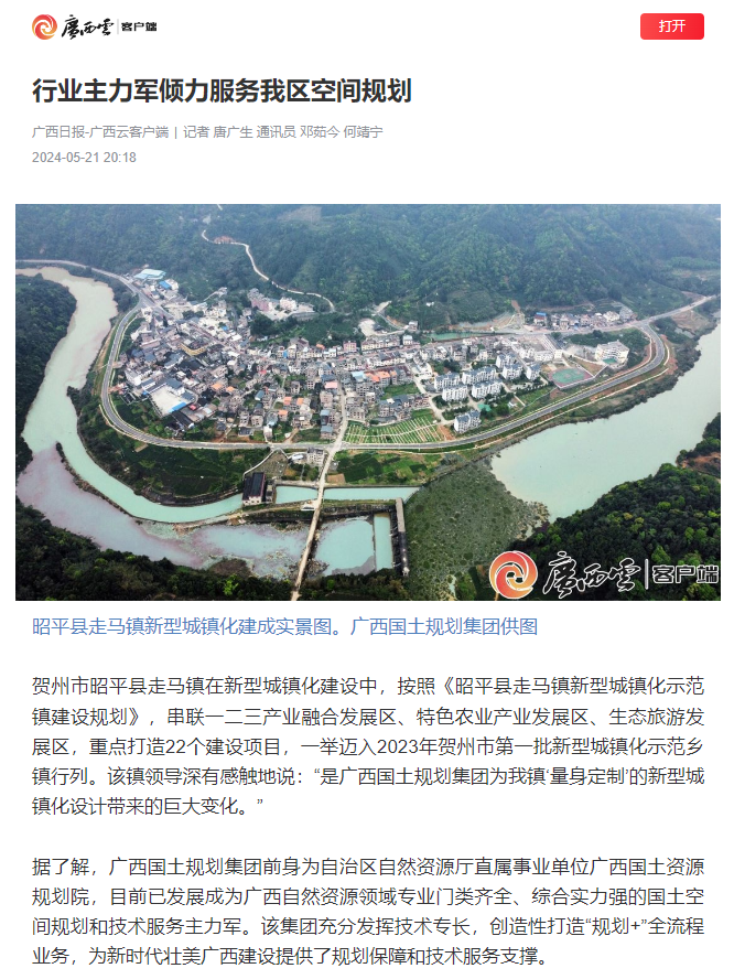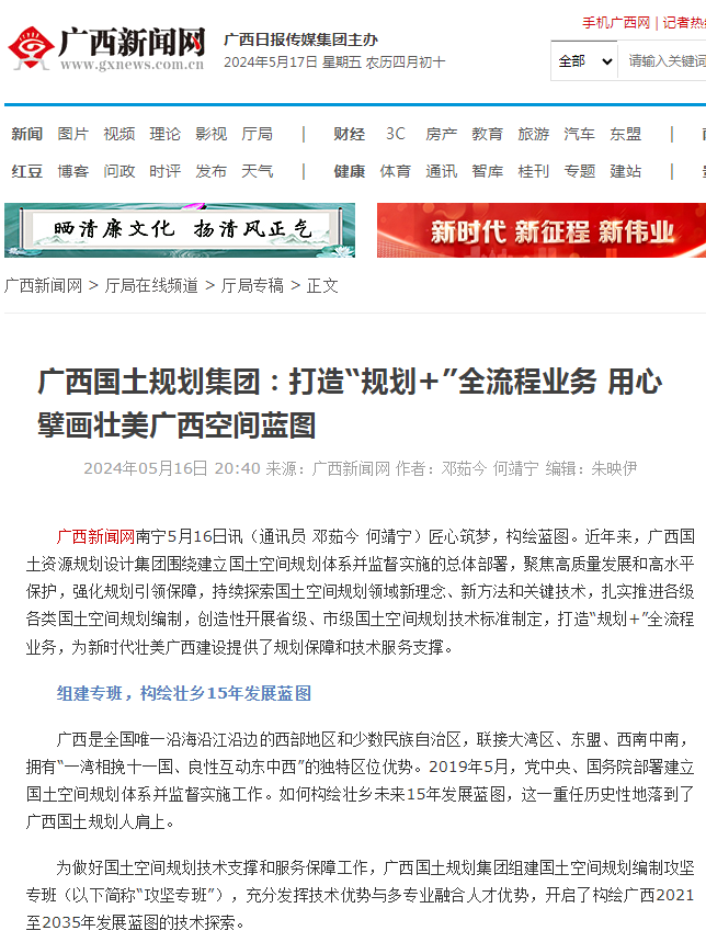 广西新闻网报道页面《广西国土规划集团:打造“规划+”全流程业务 用心擘画壮美广西空间蓝图》