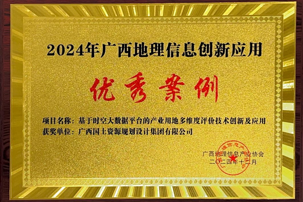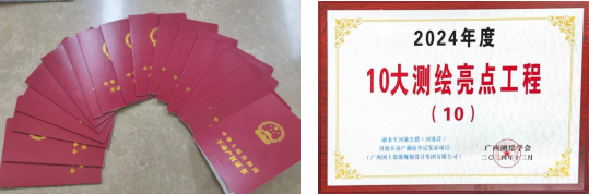 由广西国土规划集团申报的“时空数据平台建设项目、融水至河池公路(河池段)用地不动产确权登记发证项目、广西国土变更调查自治区级内外业核查及相关技术服务项目”等9个项目荣获2023年度广西遥感十大科技创新成果、广西测绘学会2024年度10大测绘亮点工程奖、2024年广西测绘地理信息产品(工程)奖、2024年广西地理信息创新应用优秀案例等多个奖项。