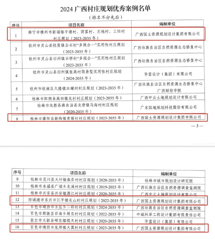 近日,自治区自然资源厅公布了2024年广西村庄规划优秀案例名单,广西国土规划集团编制的4项村庄规划成果成功入选,是本次获评优秀案例数量最多的规划编制单位。