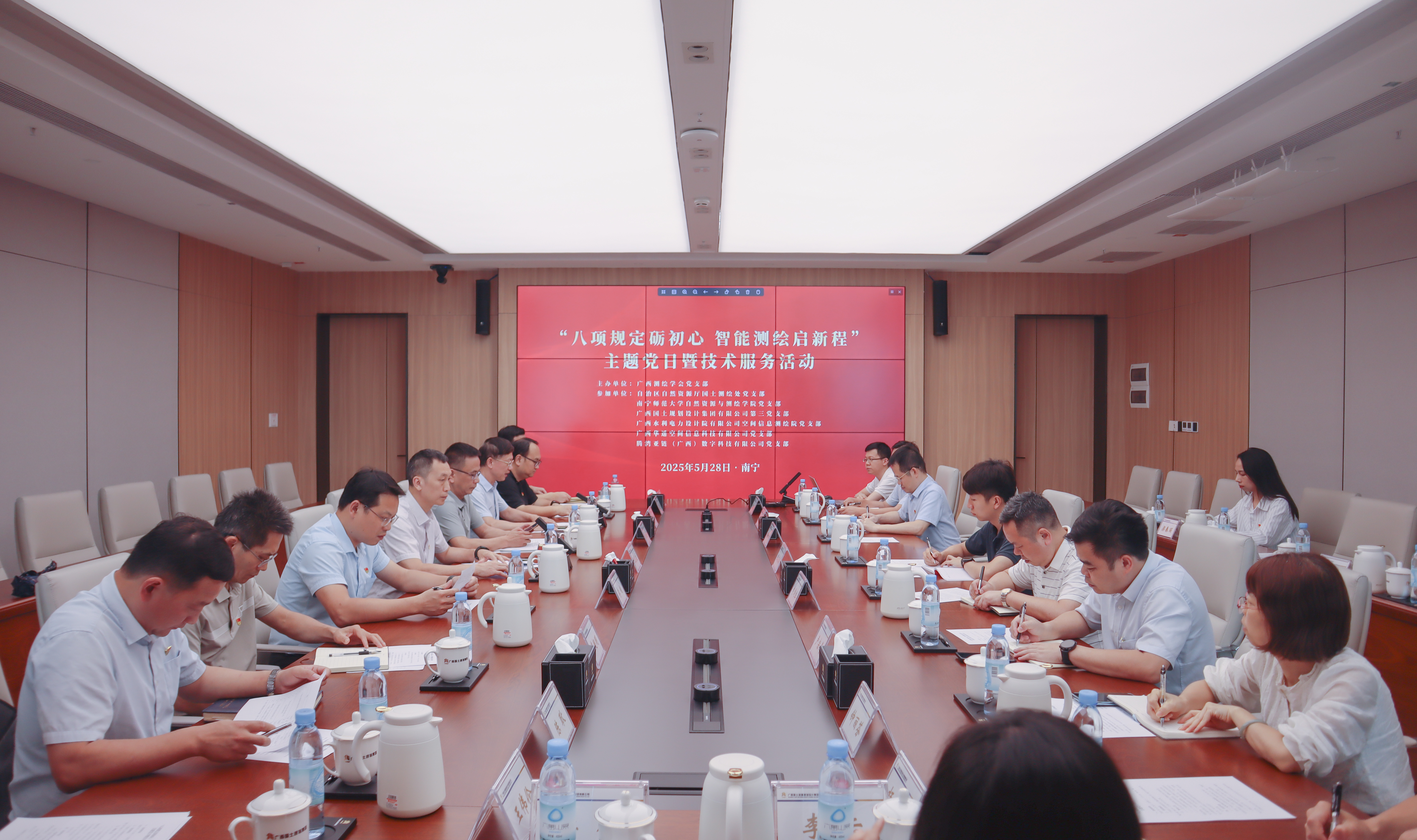 5月28日,“八项规定砺初心 智能测绘启新程”主题党日暨技术服务活动在广西国土规划集团举行。活动由广西测绘学会党支部主办,自治区自然资源厅国土测绘处党支部、南宁师范大学自然资源与测绘学院党支部、广西国土规划集团第三党支部、广西水利电力设计院有限公司空间信息测绘院党支部、广西华遥空间信息科技有限公司党支部、腾湾亚链(广西)数字科技有限公司党支部参加。