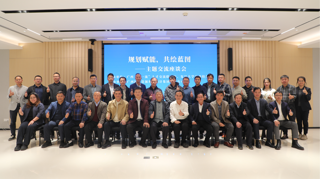 12月4日,广西双一流人才交流联合会联合复旦大学广西校友会,在广西国土规划集团举办“规划赋能,共绘蓝图”主题交流座谈会。广西双一流人才交流联合会副会长兼党支部书记、北京大学广西校友会副会长朱建平,联合会副会长、同济大学广西校友会会长叶成东,联合会秘书长、北京理工大学广西校友会会长郭春岩,联合会执行秘书长、党支部副书记、吉林大学广西校友会执行会长陈志华,广西国土规划集团党委副书记、副董事长、总经理冯学茂,特聘专家魏玉平以及30余名联合会成员参加会议。