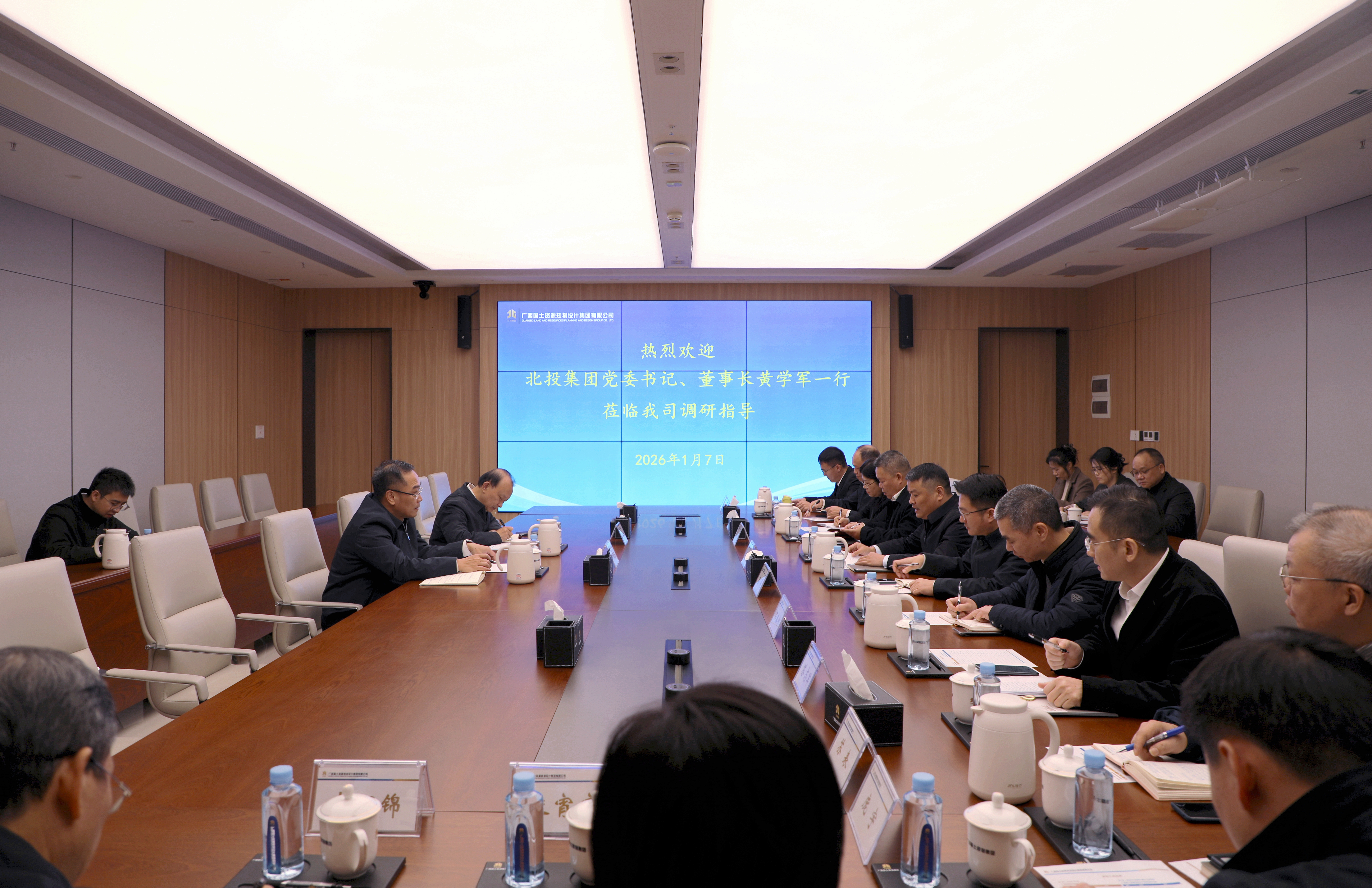 1月7日上午,北投集团党委书记、董事长黄学军到广西国土规划集团调研指导。北投集团总经理助理、办公室主任农大珍陪同调研。