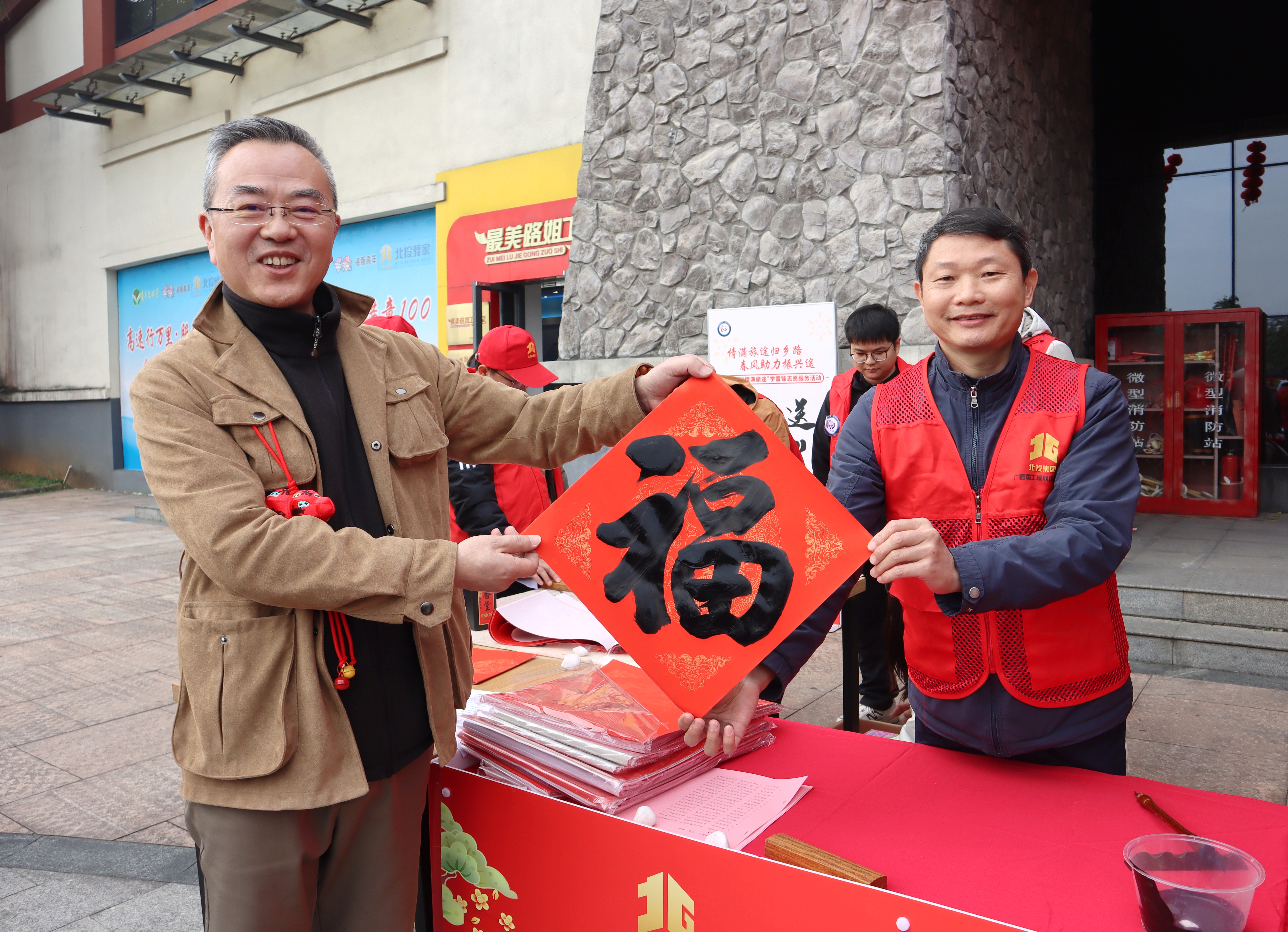 活动现场,志愿者们挥毫泼墨,将一幅幅寓意吉祥的春联和“福”字赠予过往司乘人员。同时,志愿者们还开展了安全驾驶、耕地保护、农村“房地一体”确权登记等知识宣传活动,并提供姜茶、特色美食品尝等多样化服务。